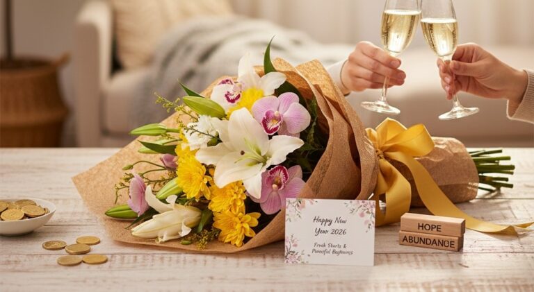 Incorporating New Year’s flowers into celebrations requires no planning. Simple touches — a carefully placed New Year’s flower arrangement on a dining table, a vase of New Year’s Eve flowers near the entrance, or a soft, New Year bouquet in the living room — may quickly lift the mood. These simple elements add visual harmony, making homes seem ready to welcome fresh beginnings.