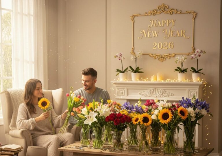 Modern lifestyles have eased, but not erased, these traditions. People now include New Year flowers in their rooms through basic arrangements, meticulously crafted New Year’s flower arrangements, or even subtle New Year’s Eve flowers placed to revitalize their homes. Sharing Happy New Year flowers has become a peaceful practice that is personal, adaptable, and highly meaningful.