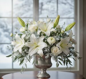 Winter flower arrangements with chrysanthemums, carnations, and lilies bring beauty to professional settings without overwhelming the décor. Winter flowers strategically placed in reception rooms, corridors, or event halls provide brightness while also bringing a touch of minimal seasonal happiness.