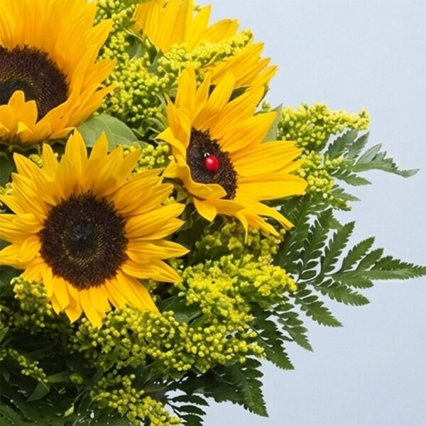 Take advantage of our online delivery service to order stunning bunch of sunflowers! Give your beloved ones a fantastic bunch of sunflowers as a birthday present or send a soothing message to a sick person. A sincere “I like you!” can be expressed by placing an order online for a bunch sunflower bouquet and having it delivered to your doorstep. The large, sun-like flowers brighten any bouquet and are adored by all! These spectacular sunflowers are now available online to make your day cheerful!