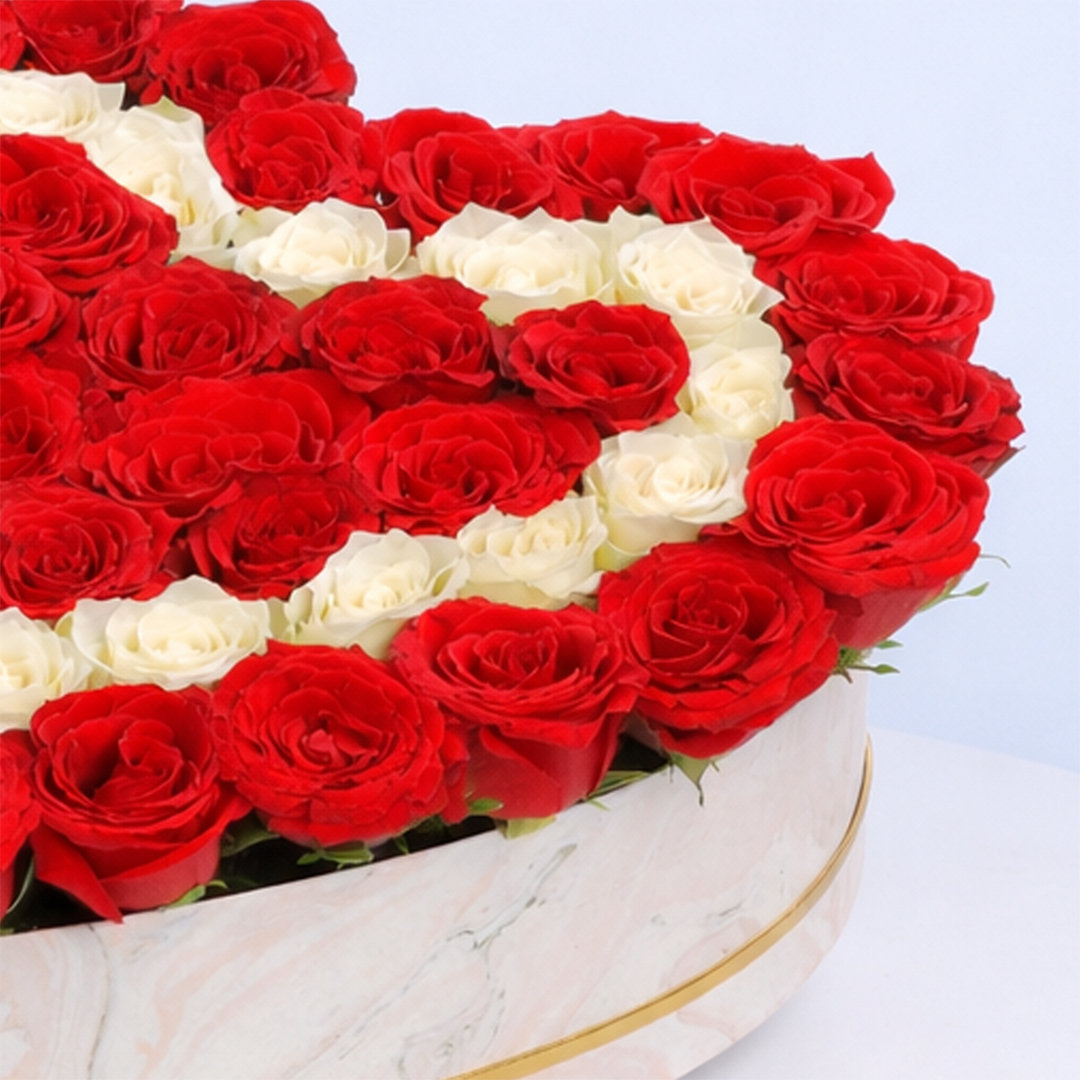 Flowers consists of Red Rose 30 to 35 Stems, White Rose 15 to 20 Stems.